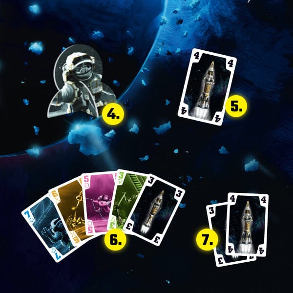 4. Vadas visada pradeda žaidimą. 5. Vadas yra žaidėjas, turintis raketos 4 kortą. 6. Visi žaidėjai turi dėti spalvą, kuri buvo padėta pirmiau; jei negalite, galite dėti kitą spalvą ar kozirį (raketos kortą) 7. Aukščiausios vertės koziriai visada laimi. -