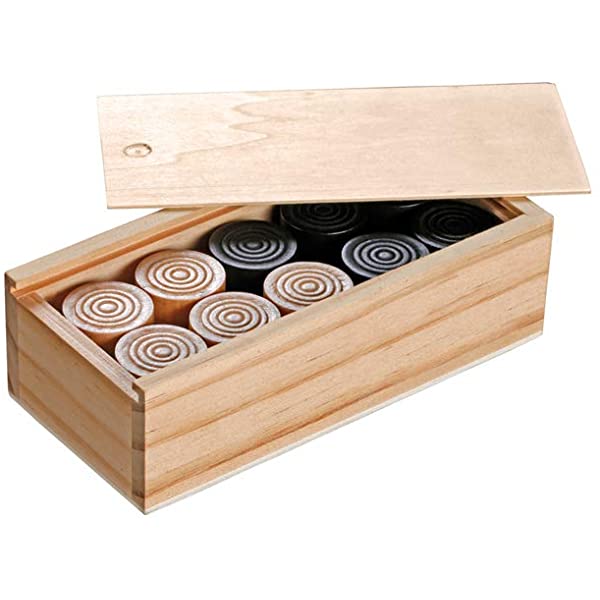 20 tamsių ir 20 šviesių žaidimo figūrėlių, medinė dėžutė.