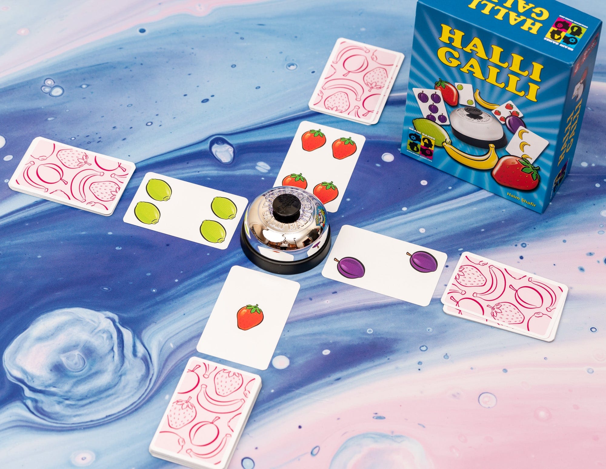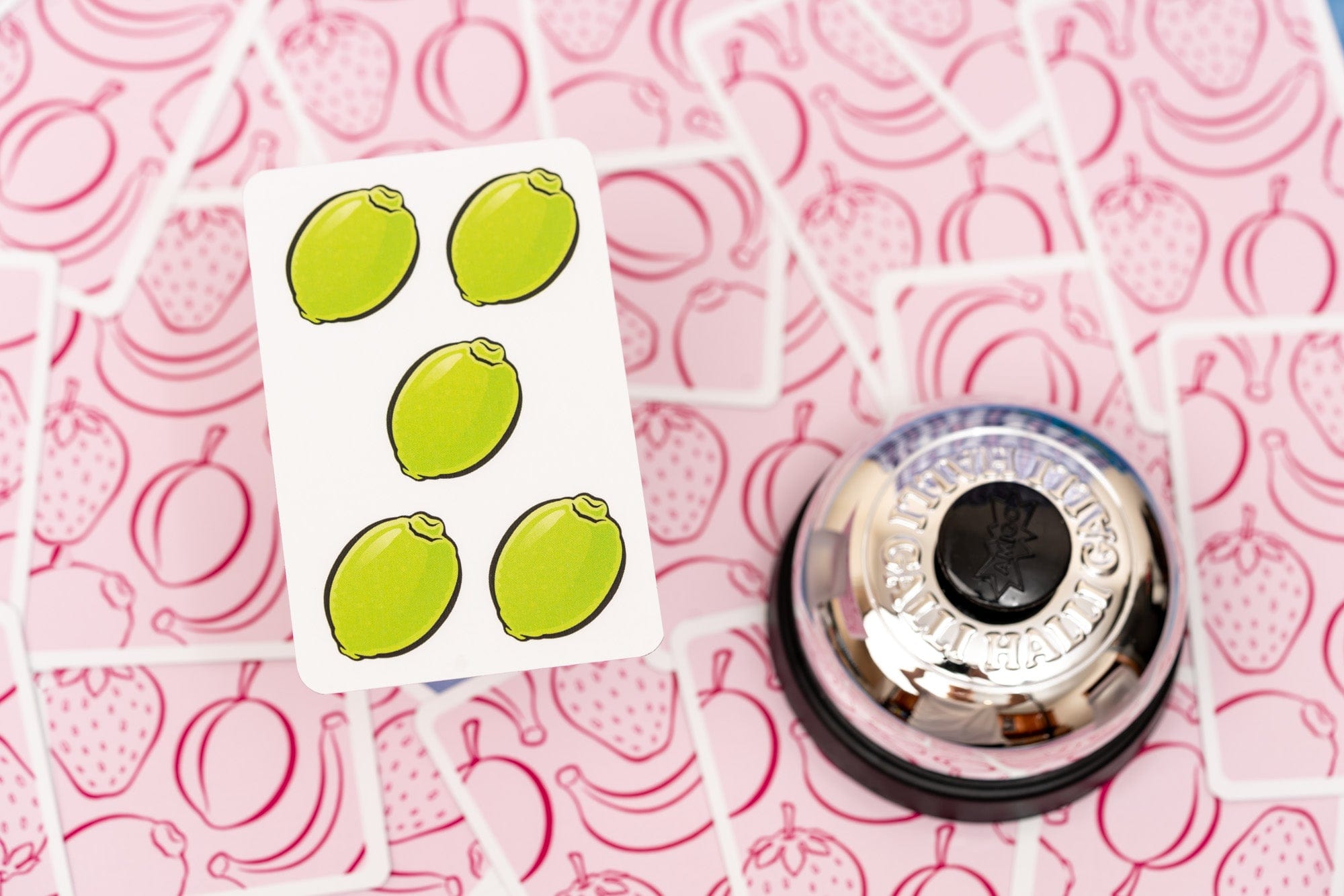 Šis įdomus reakcijos žaidimas yra labai paprastas: skambutis stalo viduryje, kortų krūvelė kiekvienam žaidėjui. Kai tik matomi lygiai 5 vienodi vaisiai...laimi greičiausias! Tačiau daug juoko ir muštynių dėl skambučio garantuojame!