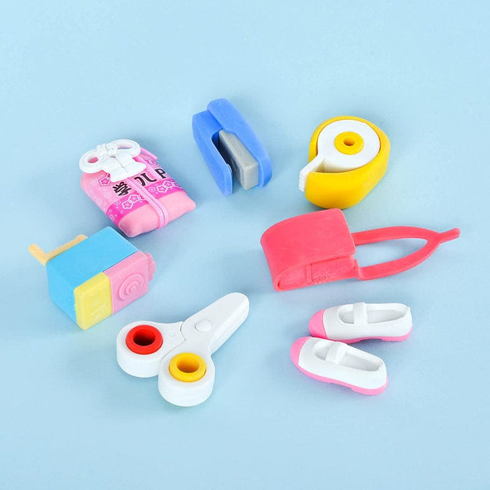 Atgal į mokyklą su būtiniausiomis priemonėmis! Švelnių pastelinių spalvų žirklės, mokyklinis krepšys ir kiti žavūs trintukai – puiki penalo ar stalo puošmena iš „Back to School“ temos. Juos netgi galima išardyti ir iš naujo sudėlioti kaip mini dėliones.