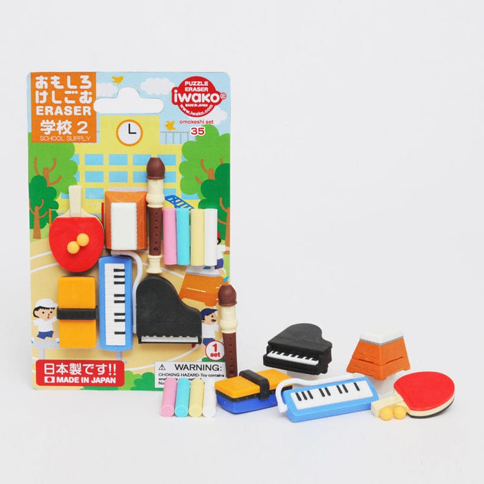 Atgal į mokyklą mokytis groti, sportuoti ir rašyti ant lentos! Originalūs mokyklinės temos japoniški trintukai – puiki penalo ar rašomojo stalo puošmena. Juos netgi galima išardyti ir iš naujo sudėlioti kaip mini dėliones.
