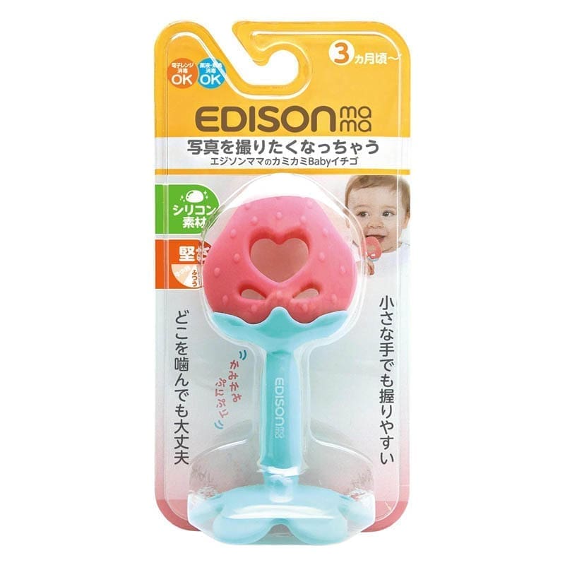 Vaisiaus formos mielas ir įdomus kramtuko dizainas traukia vaiko dėmesį.