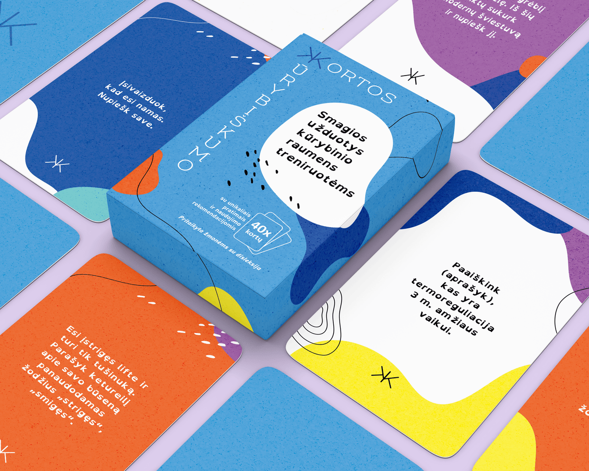 Rinkinyje rasi 40 unikalių pratimų su naudojimo rekomendacijomis. Užduotys sukurtos stimuliuoti tavo fantaziją, pažadinti vaizduotę ir skatinti kūrybiškumą. Naudok šį žaidimą kaip švelnų stumtelėjimą kūrybinėms sesijoms, darbiniams susitikimams, edukacijoms, pramogoms su draugais ar kaip smagų būdą pradėti dieną.