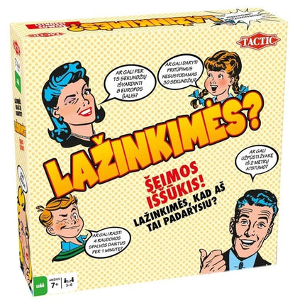 Žaisdami šį smagų visai šeimai skirtą žaidimą, turite stengtis atlikti įvairias užduotis, o kiti žaidėjai lažinasi, ar jums pasiseks, ar ne. Jei žaidėjo spėjimas teisingas, jis praturtėja! Jei užduotį atliekate sėkmingai, praturtėjate ir jūs! „Lažinkimės?“ - puikus pasirinkimas, norintiems linksmai praleisti laiką! Žaidimas aktyvus ir azartiškas, o užduotys - smagios ir netikėtos, tad puikiai pasilinksmins tiek suaugusieji, tiek vaikai!