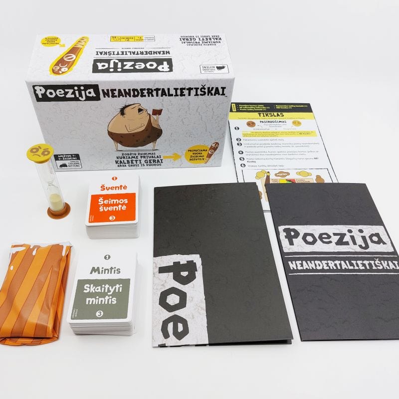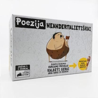 Poezija Neandertalietiškai tai yra visai šeimai skirtas vakarėlių žaidimas, dabar jau ir lietuvių kalba, kuriame žaidėjai pelno taškus, kai komandos draugai atspėja žodžius ir frazes. Bėda tik, kad tai daryti galima tik vienskiemeniais ar dviskiemeniais žodžiais. Juk neandertaliečiai nebuvo labai iškalbingi. Pamiršus šią taisyklę, varžovų komanda tik ir laukia kad galėtų trinktelėti per kepurę su didžiule pripučiama kuoka.