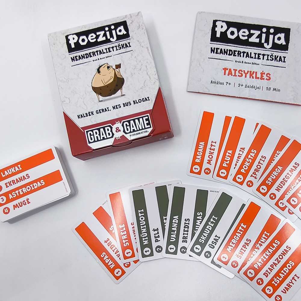 Žaidėjai paeiliui tampa „neandertaliečių poetu“, bandydami apibūdinti sudėtingus šiuolaikinius žodžius ir naudodami tik paprastus, vieno ar dviejų skiemenų žodžius. Ištempkite savo kūrybinius raumenis, kad galėtumėte bendrauti be įprasto žodyno.