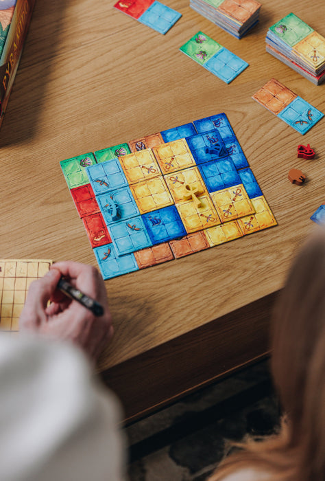 „Pyramido“ yra kortelių dėjimo žaidimas, kuriame kiekvienas piramidės lygis sukuria jungtis tarp kortelių. Žaidėjai paeiliui renkasi iš įvairių domino, kad pastatytų savo piramidę. Norėdami surinkti kuo daugiau taškų, žaidėjai turi sugrupuoti brangakmenių simbolius, esančius ant domino, ir dėdami tos pačios spalvos žetonus suaktyvinti taškų rinkimo plotus. Kiekvienas domino pasirinkimas ir jo pozicija turi didelę reikšmę, nes ankstesni žaidimo lygiai daro įtaką viso žaidimo rezultatui.