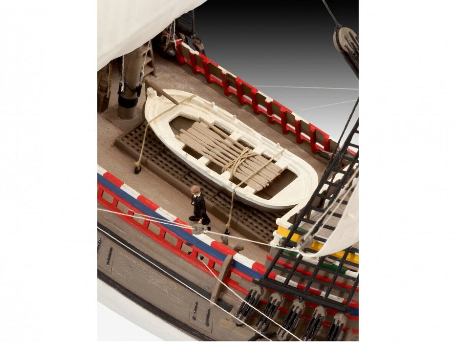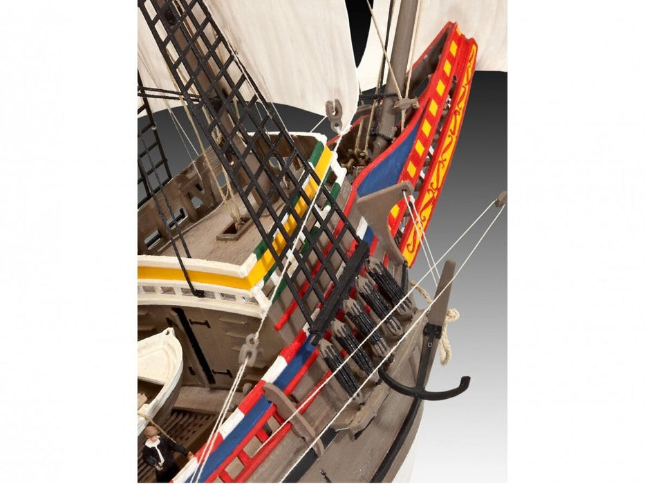 Dėžutėje yra: detalės, lipdukai ir surinkimo instrukcijos. Komplekte yra dažai ir klijai.