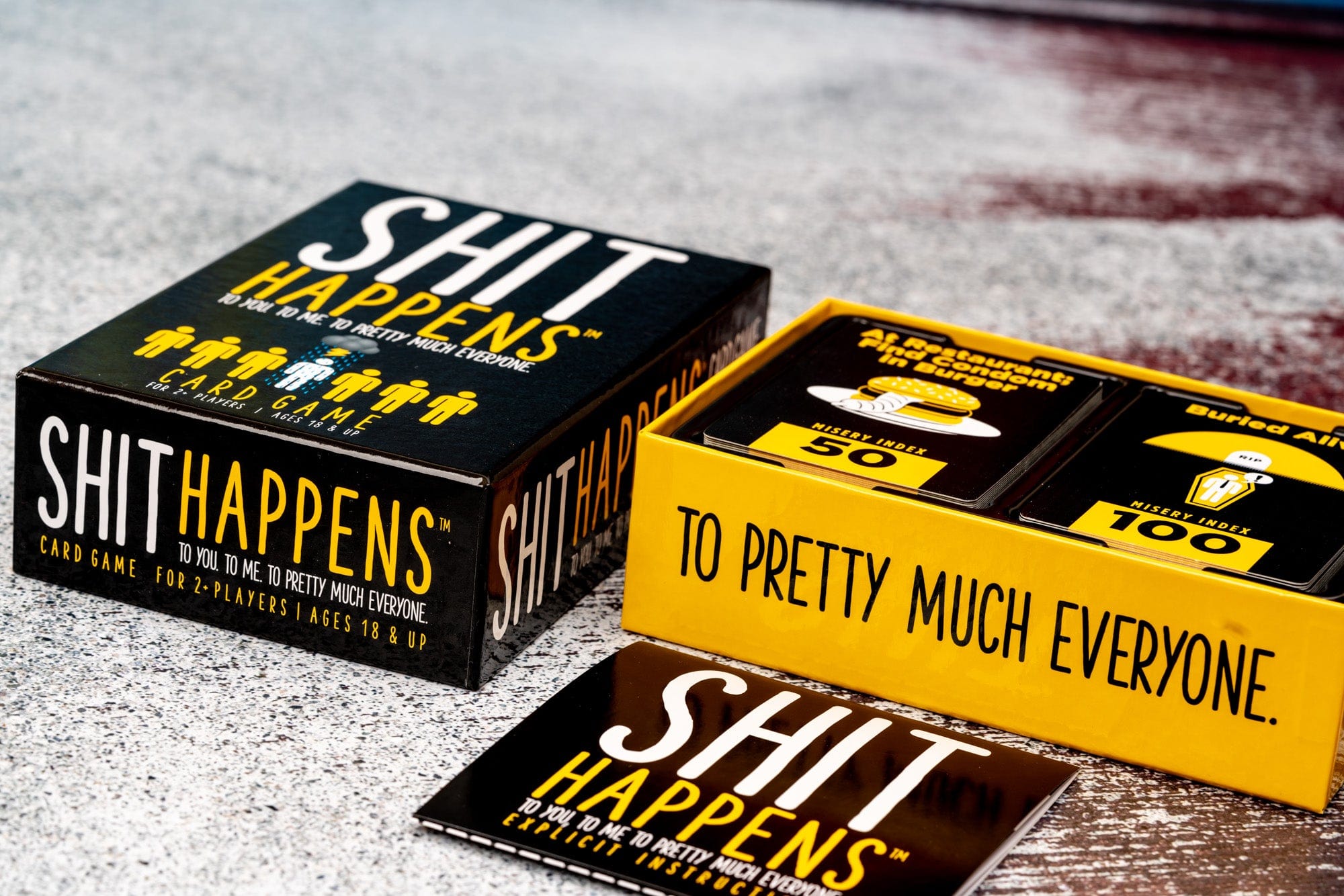 „Shit Happens “ - tai jaudinantis vakarėlių žaidimas, kuriame žaidėjai stengiasi, kuo tiksliau įvertinti ir teisingai surikiuoti įvairias skaudžias gyvenimo situacijas. Kiekvienoje kortelėje pavaizduotas siaubingas įvykis, kuris gali nutikti jums ar jūsų draugams, pavyzdžiui, puolantis bičių spiečius ar nuogų tėvų pamatymas. Psichikos sveikatos ekspertų grupė visus situacijas įvertino nuo 1 iki 100, o žaidėjai turi sudėti dešimt kortelių teisinga tvarka.