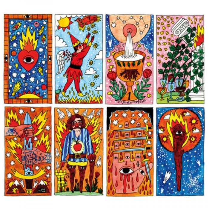 Ricardo Cavolo yra labai populiarus ir produktyvus ispanų menininkas, kurio meno kūriniai puikuojasi ant albumų viršelių, plakatų, knygų viršelių, drabužių ir t. t. Jam būdingos savitos, ryškios spalvos, naivūs personažai, daugybė akių ir, kaip rodo šios kaladės pavadinimas, ugnis. Vienpusio dizaino – liepsnojanti širdis (su akimi), liepsnojančios krentančios žvaigždės, žvaigždės ir planetos mėlyname fone, o kortelės apačioje teka saulė.