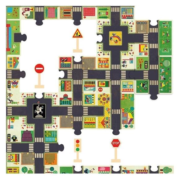 Dėlionė susideda iš 24 didelių detalių su kelių elementais ir 5 kelio ženklų. Iš detalių galima sustatyti ne vieną trasos variantą, todėl žaidimas su šia dėlione niekad nebus vienodas.