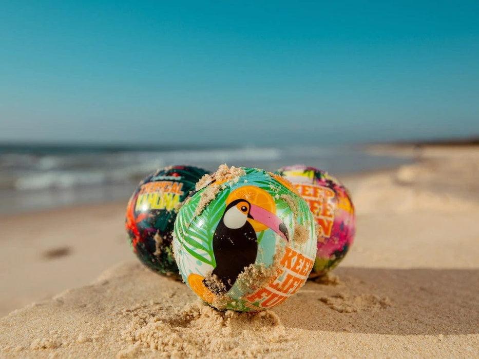 Waboba Tropical Kahuna kamuolys puikiai atšoka nuo vandens. Tinka žaisti prie vandens telkinių.